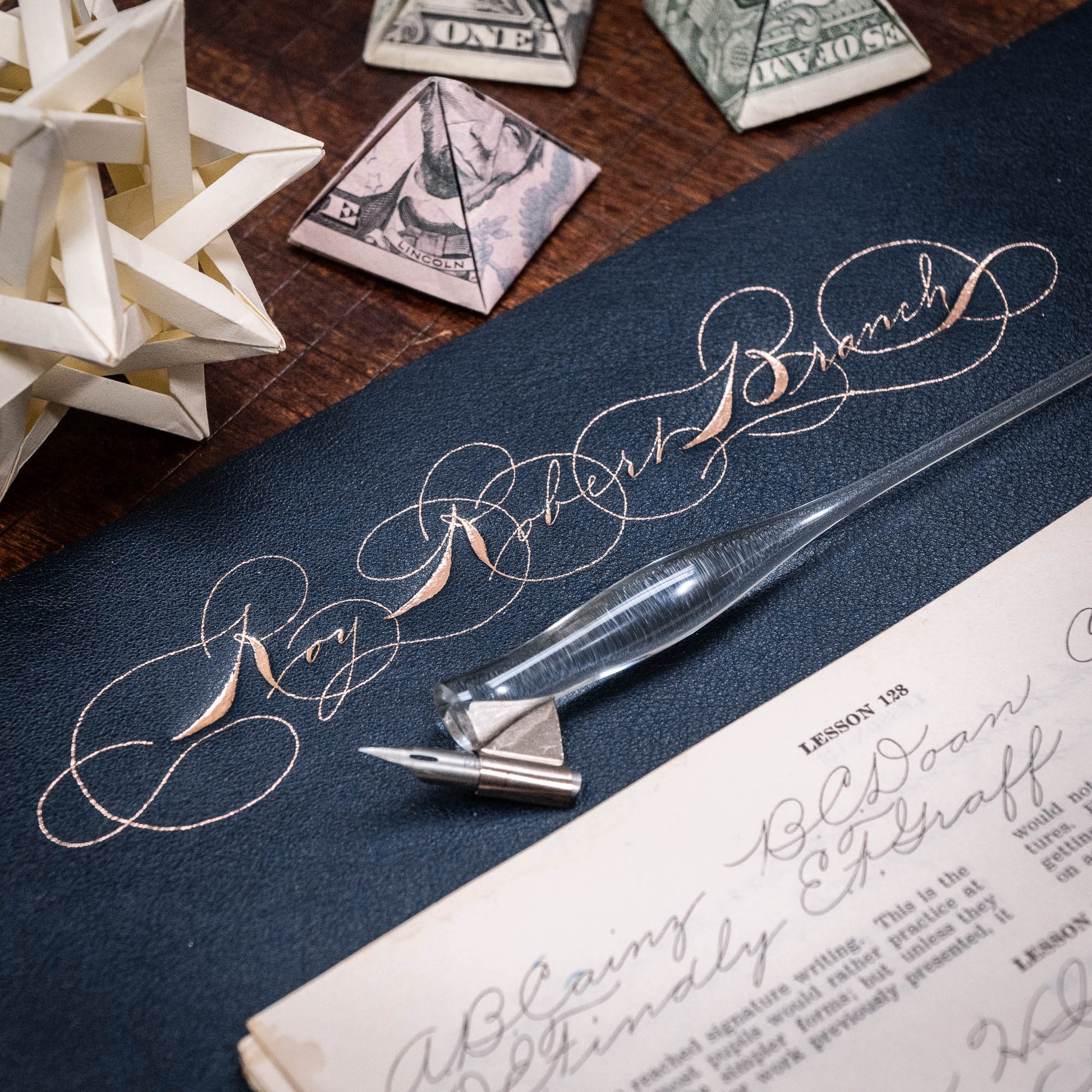 It's a well known fact that the best penmanship and calligraphy practice requires a moderately padded surface in order for the nib to properly connect with the paper. Many artists use craft foam or stacks of paper to get a good writing surface.